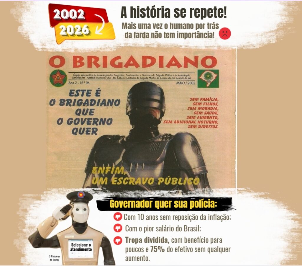Na prática, Eduardo Leite busca resgatar a postura de gestores de 2002, que tratavam os brigadianos como verdadeiros “robocops”: apenas trabalho, sem custos, sem direitos e sem reconhecimento.
