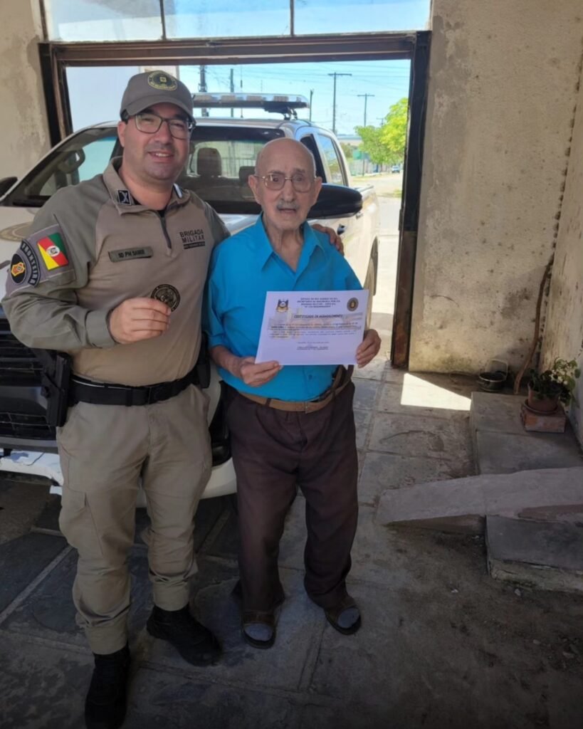 Com seus impressionantes 102 anos, o Sgt Élvio é a expressão viva do valor, da coragem e da história da Brigada Militar. Sua trajetória inspira gerações e reforça o orgulho de todos que seguem preservando o legado construído por veteranos como ele.