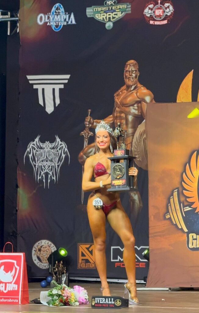 De acordo com registros públicos e publicações relacionadas ao evento, Vitória participou de três categorias e saiu campeã em todas elas, confirmando excelente preparação física, disciplina e desempenho no palco. Em uma das publicações localizadas, a atleta aparece citada como campeã Bikini, campeã Overall e grande campeã do Grand Prix Sul.